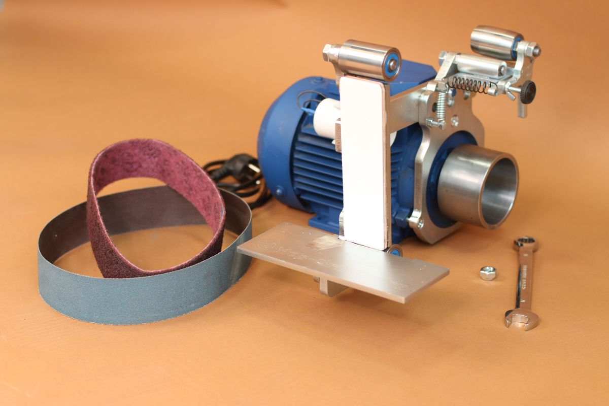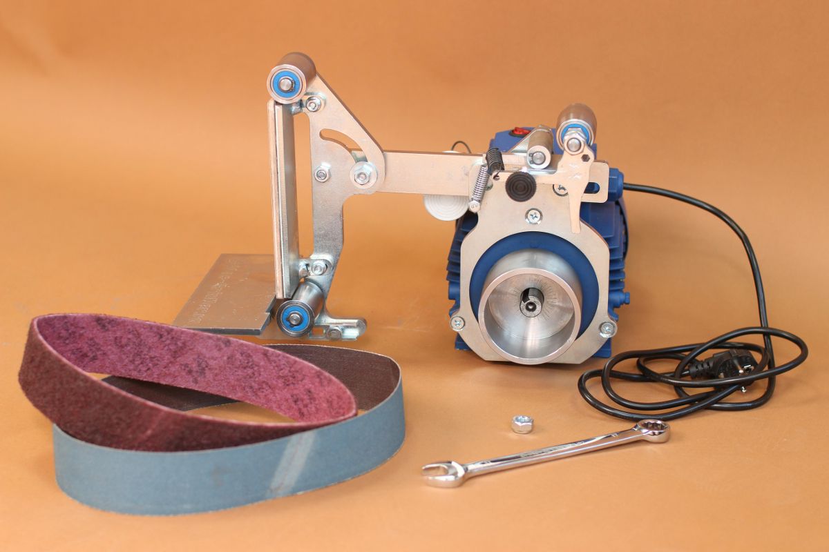 - Гриндер Хозяин является настольной версией ленточно-шлифовальных станков и применим как в частных «гаражных» мастерских, так и для небольших производств с металлом, камнем или деревом.
