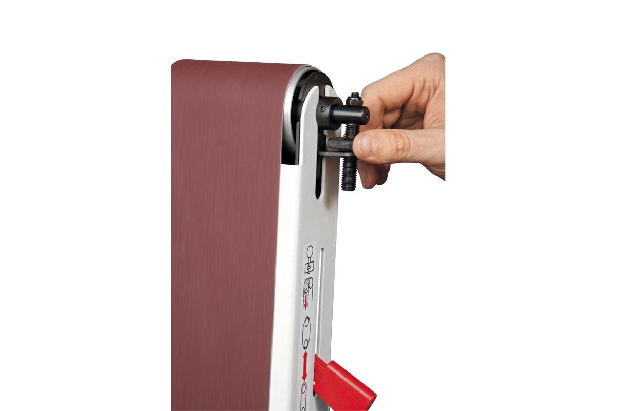 Натяжение шлифовальной ленты регулируется с помощью рычага. На настройку не уйдёт много времени.
