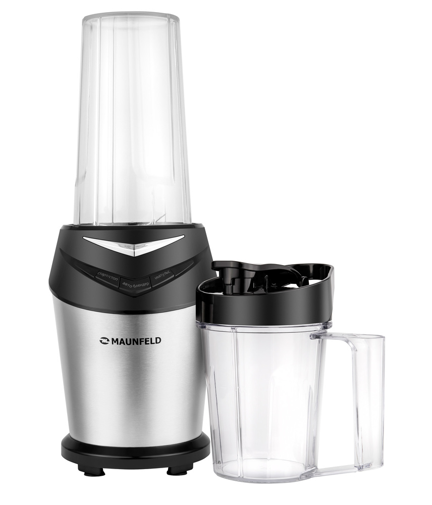 В комплект входит большая чаша (бутылка) объемом 700 мл, для приготовления супов, пюре, кремов, теста для оладий и много другого. Приятным дополнением идет кружка вместимостью 350 мл. В ней удобно делать смузи и коктейли. Крышка идет в комплекте, что позволяет использовать бутылку для хранения и для транспортировки полученного продукта.