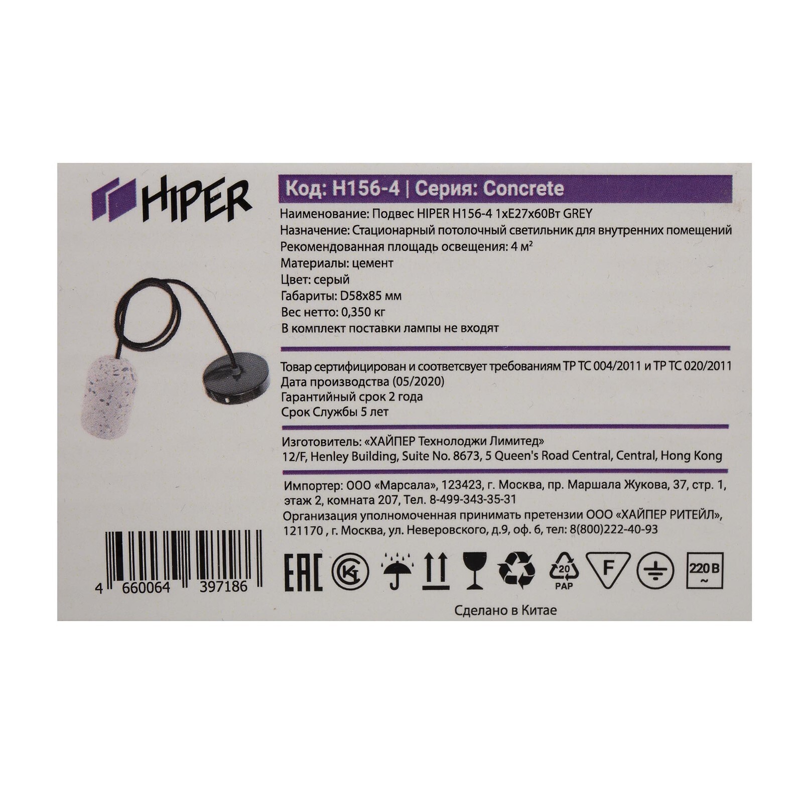 Подвес, 60Вт, E27, 5,8x5,8x8,5 см, цвет серый