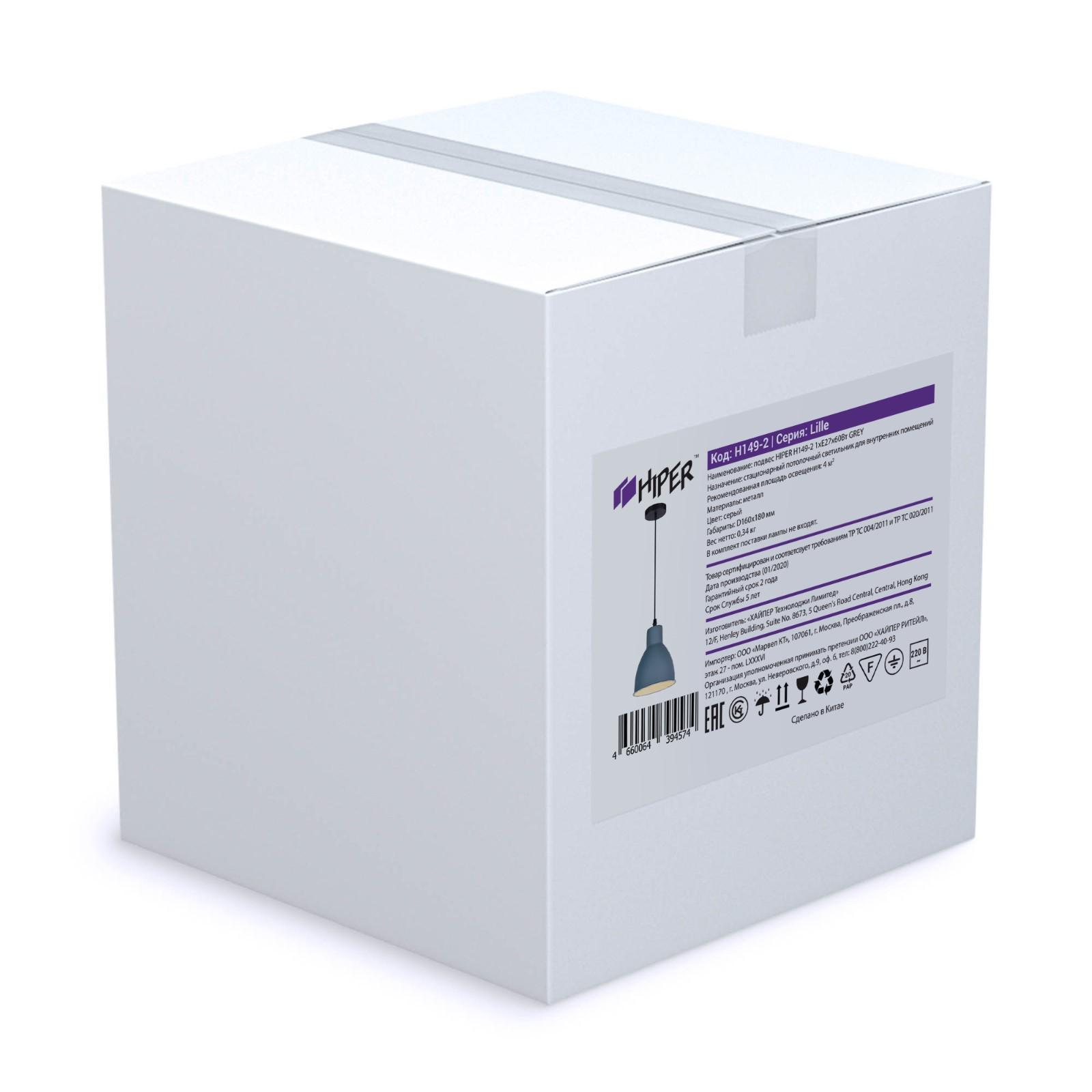Подвес, 60Вт, E27, 16x16x90 см, цвет серый