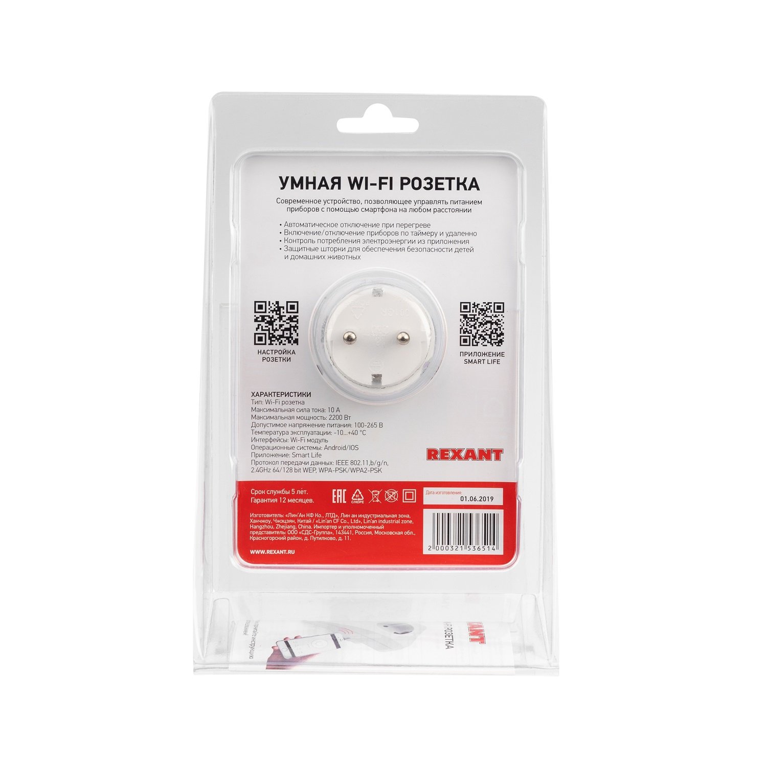 Умная розетка REXANT Wi-Fi с дистанционным управлением 11-6008