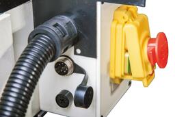 Широкая кнопка экстренного отключения. Просто нажать рукой или локтём.