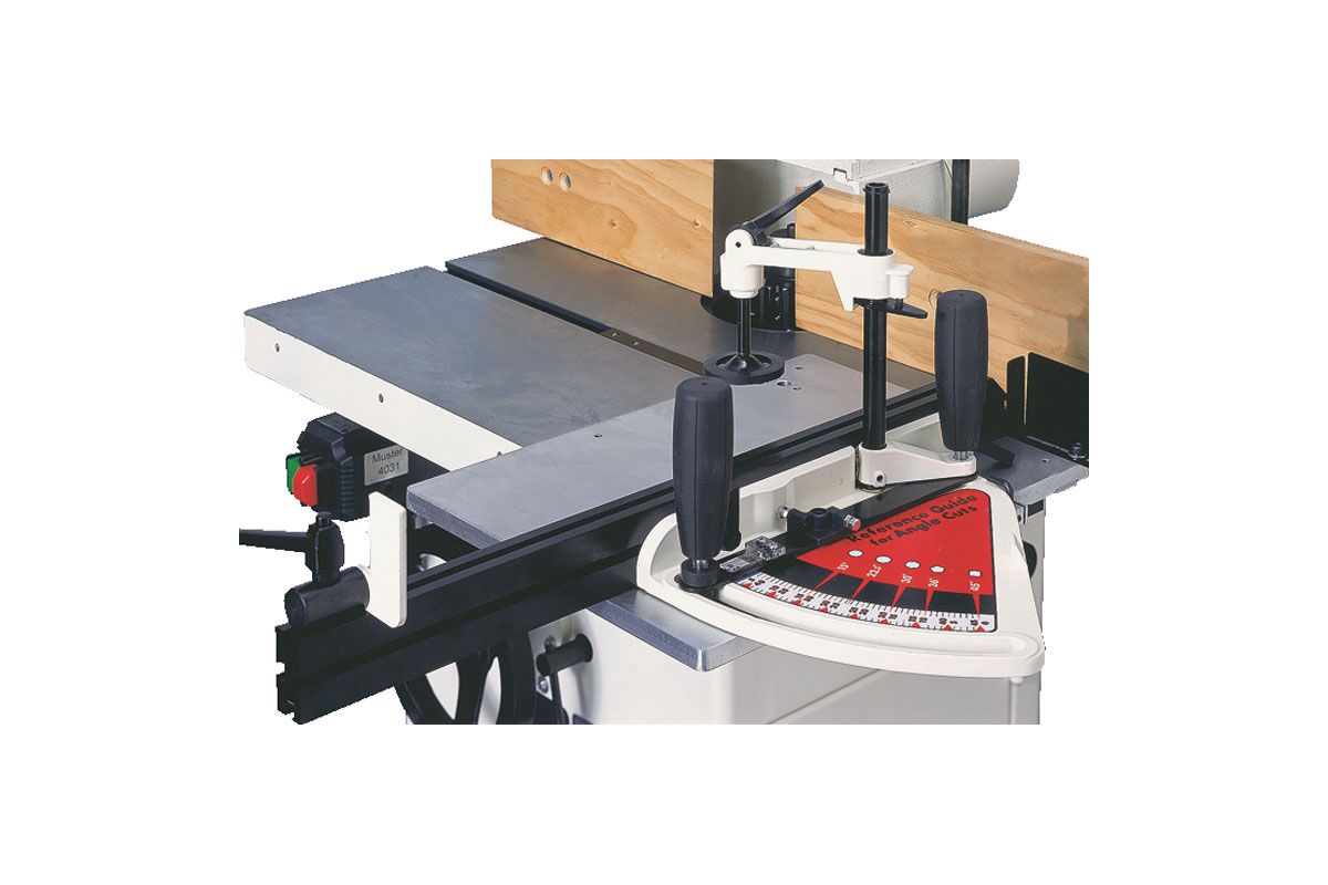 Большой рабочий стол из чугуна с отшлифованной и отполированной поверхностью обеспечивает плавное перемещение заготовки. Шпиндель точно регулируется по высоте при помощи маховика. Благодаря маркировке шпинделя замена фрез не вызывает затруднений.