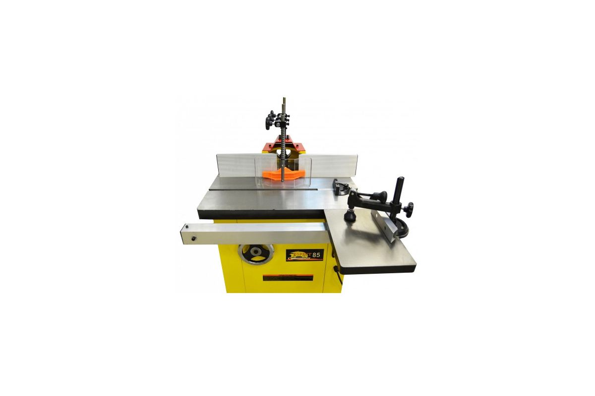 Для обеспечения высокоточной и стабильной работы станка Энкор Корвет 85 оснащён подвижным столом со струбциной, транспортирным упором с регулировкой положения, прижимами для фиксации заготовок в одной плоскости, патрубком пылесборника, чтобы рабочее место оставалось чистым. Большие размеры и масса станка исключают вибрацию при обработке объёмных и тяжёлых заготовок.