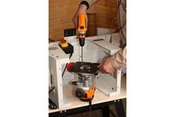 На фрезерном упоре есть патрубок для отвода стружки. С ним рабочее место будет меньше засоряться.