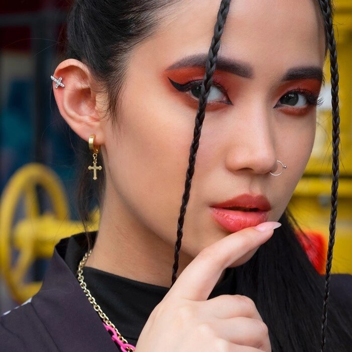 Пирсинг универсальный "Крест", цвет белый в серебре