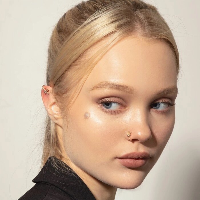 Пирсинг универсальный "Цветок" простой, цвет белый в розовом золоте