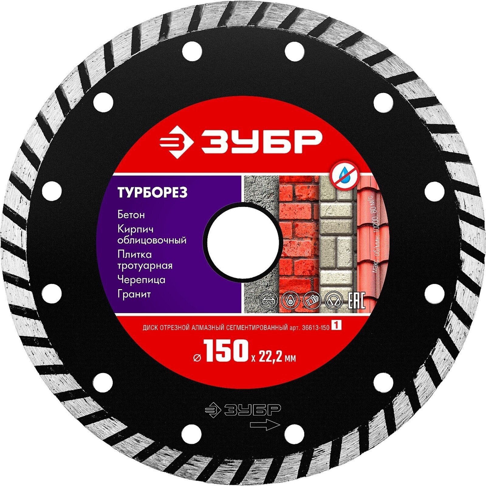 Диск алмазный ЗУБР 36613-150_z01, отрезной сегментированный по бетону, кирпичу, камню 150 мм 9511