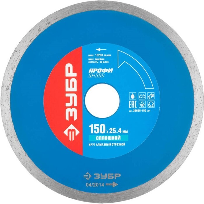Диск алмазный ЗУБР 36655-150_z01, отрезной сплошной по керамограниту, мрамору, плитке, 150 мм 9511