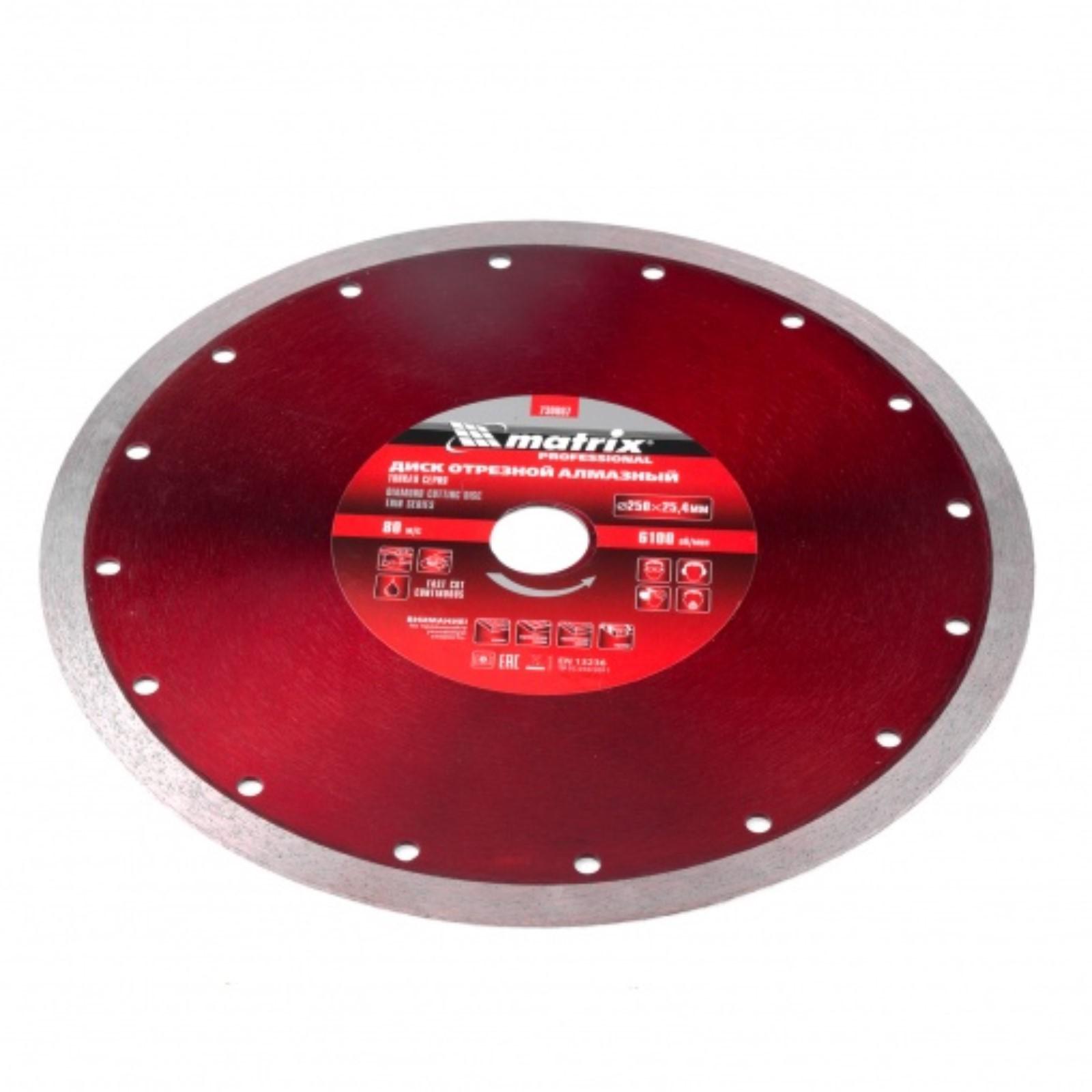 Диск алмазный сплошной Matrix, тонкий, мокрый рез, d=250х25.4 мм