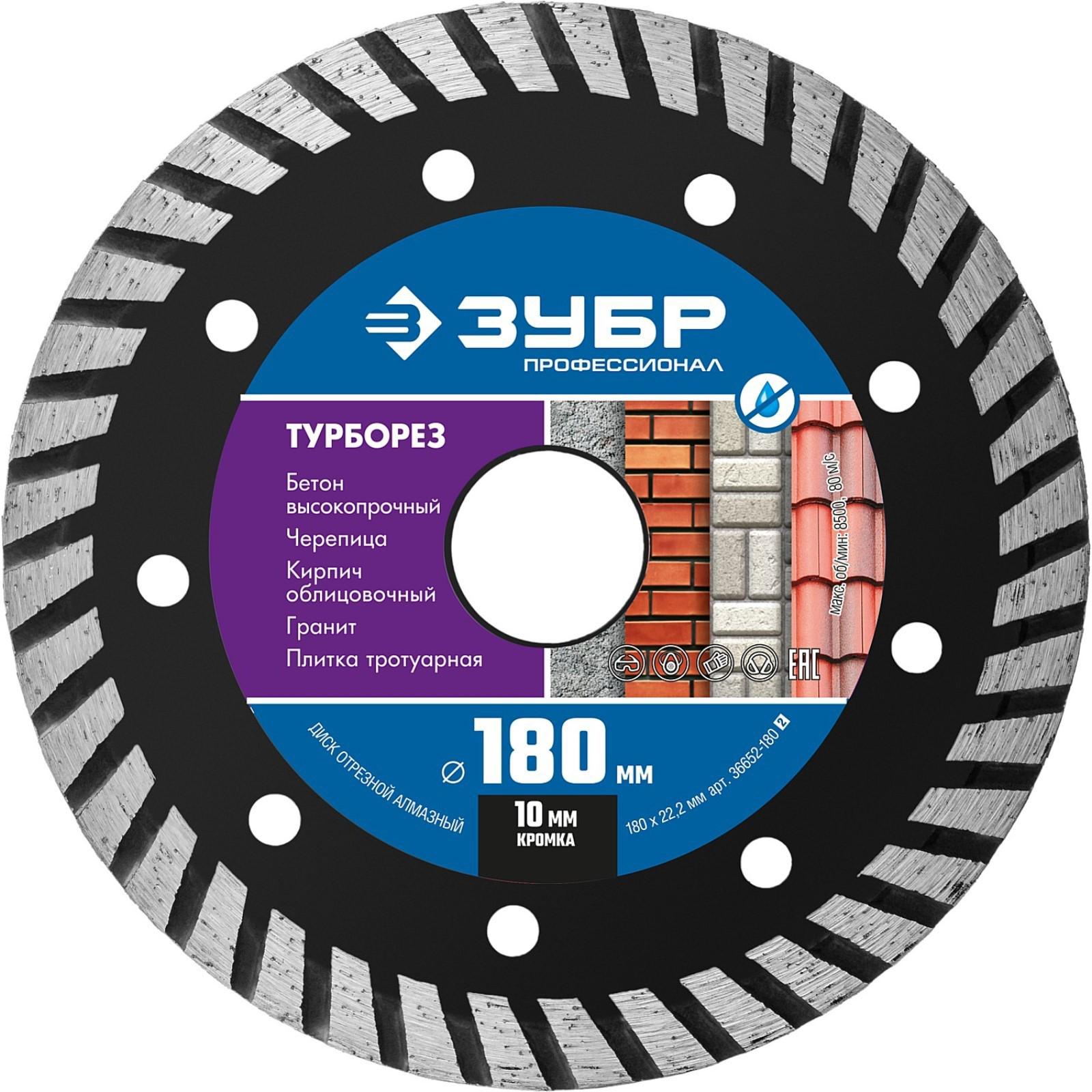 Диск алмазный ЗУБР 36652-180_z02, отрезной по бетону, кирпичу, граниту, 180 мм