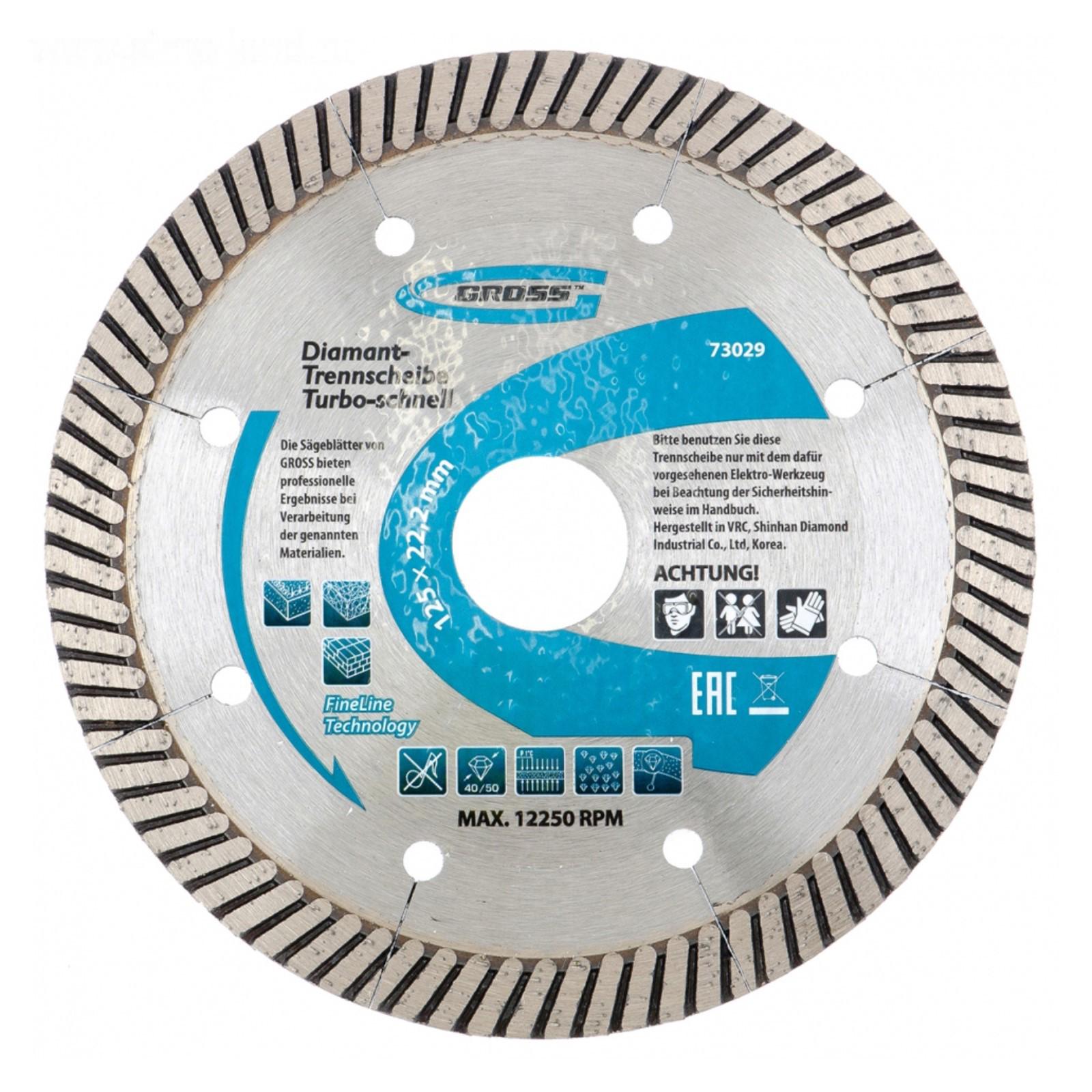 Диск алмазный GROSS, 125 × 22,2 мм, турбо с лазерной перфорацией, сухое резание