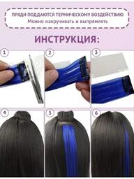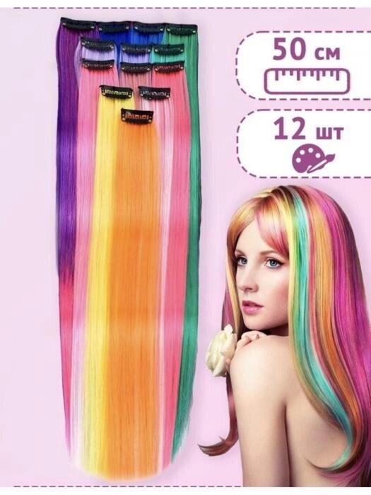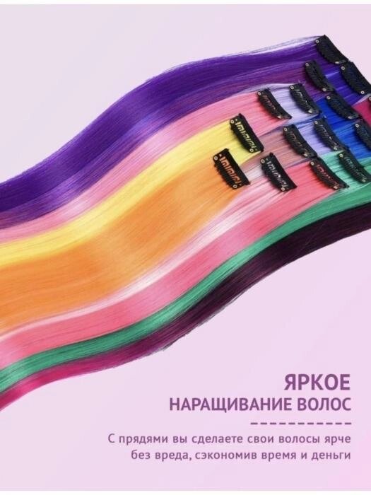 Цветные пряди для волос на заколках Набор локонов Трессы для причесок девочек