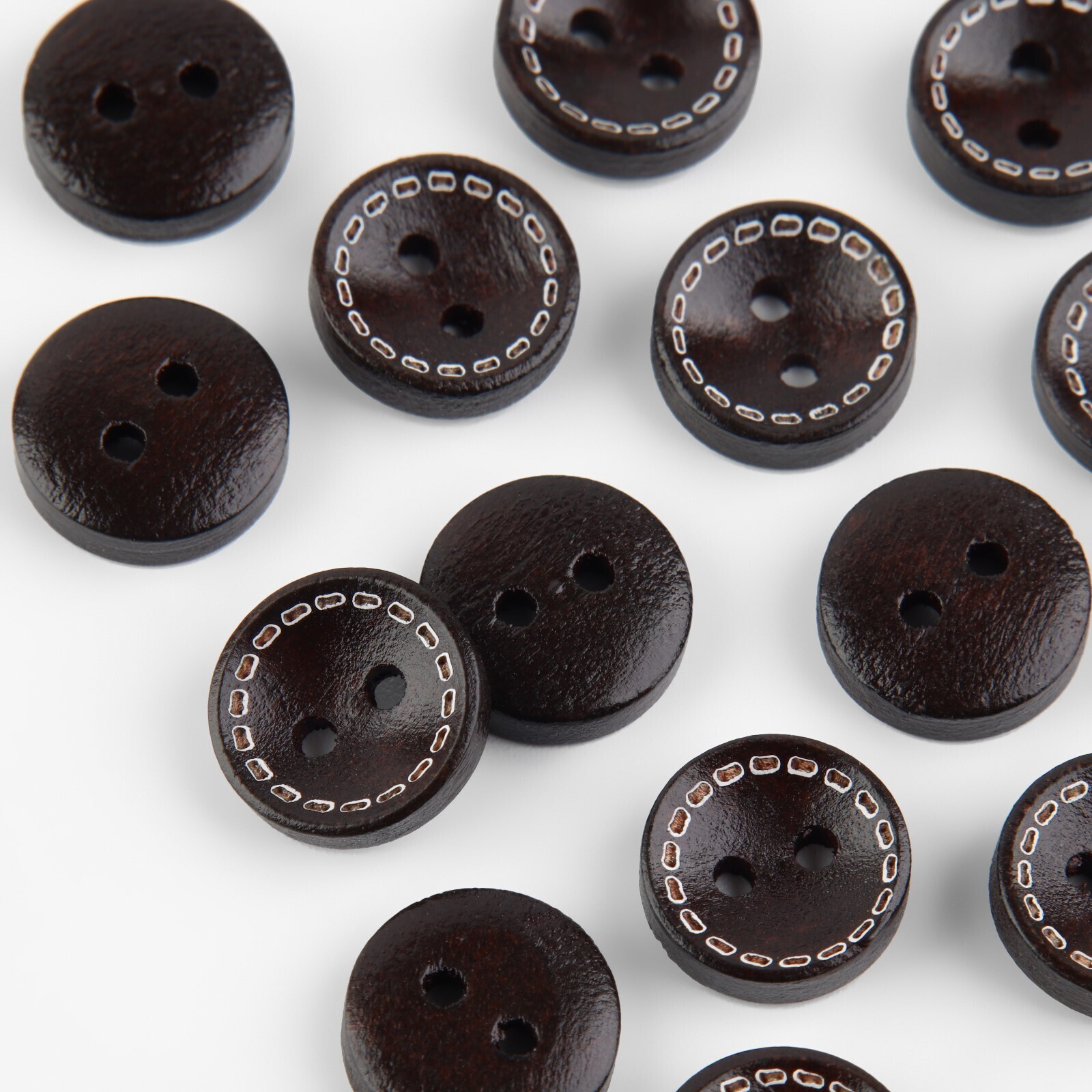 Пуговицы деревянные, 2 прокола, d = 12 мм, 20 шт, цвет чёрный
