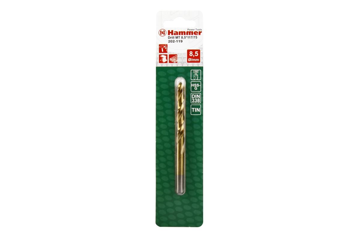 Сверло HAMMER Flex 202-119 DR MT 8,5мм*117/75мм металл, HSS, TIN