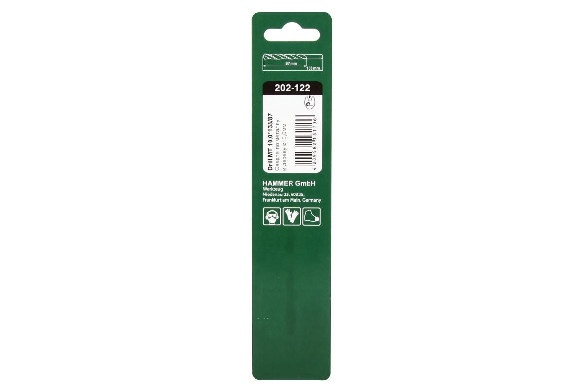 Сверло HAMMER Flex 202-122 DR MT 10,0мм*133/87мм металл, HSS, TIN