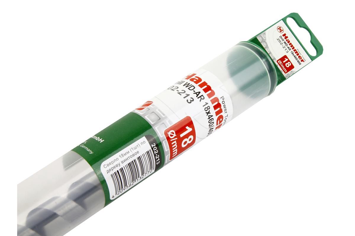 Сверло HAMMER Flex 202-213 DR WD AR 18мм*460/370мм дерево, спиральное