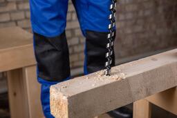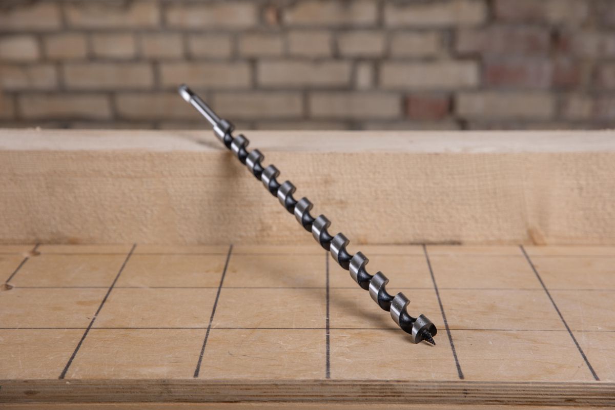 Винтовое сверло отлично подойдет для засверливания больших балок, перекрытий, брусьев и бревен.