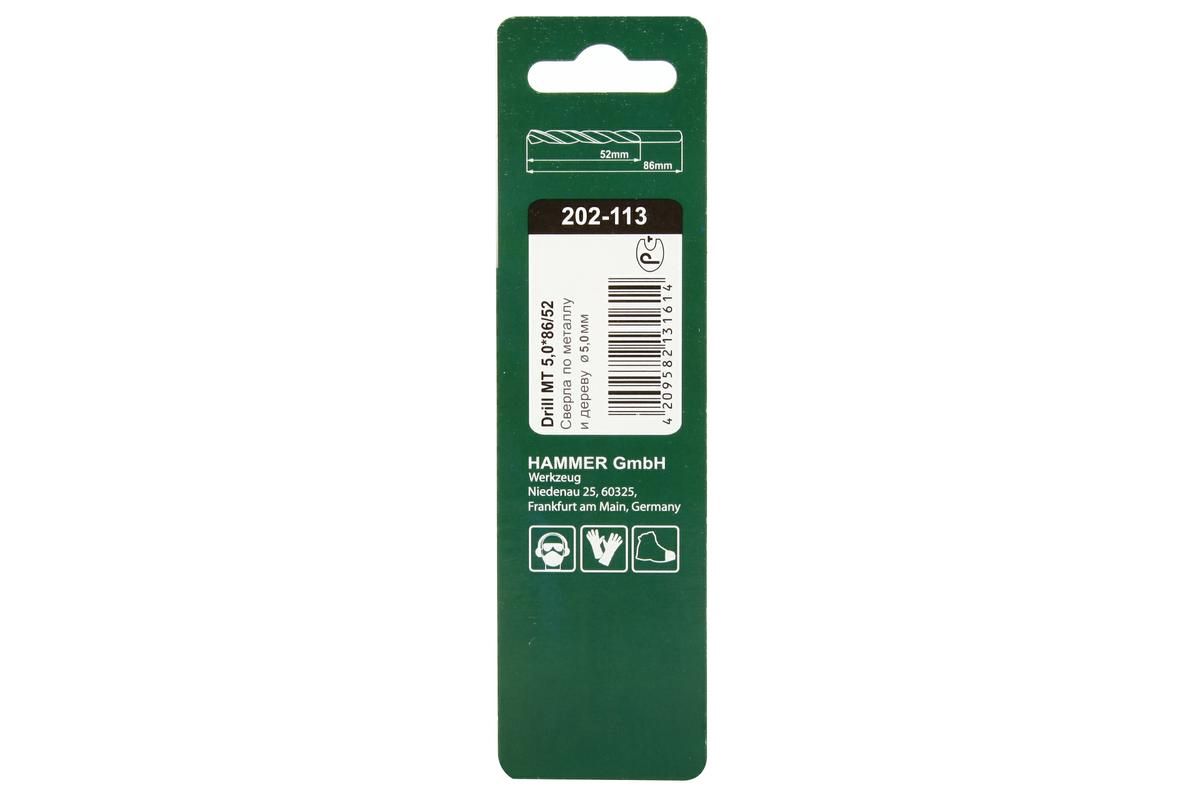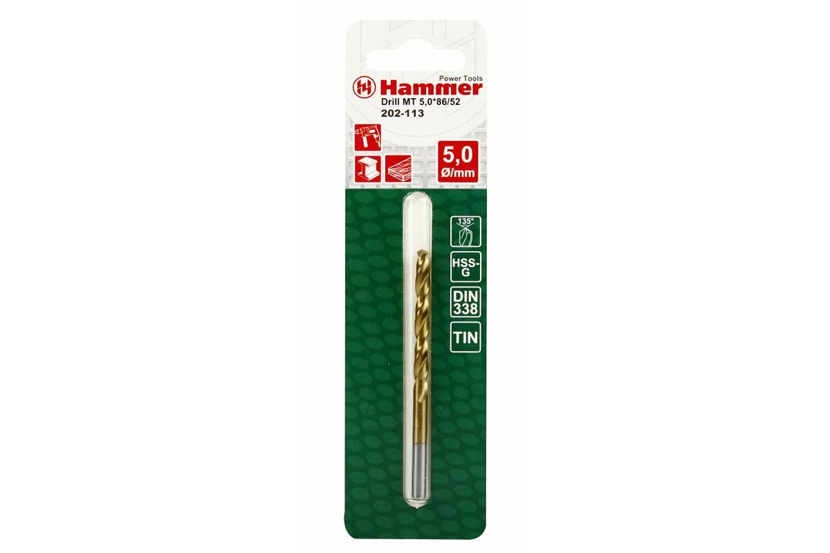 Сверло HAMMER Flex 202-113 DR MT 5,0мм*86/52мм металл, HSS, TIN