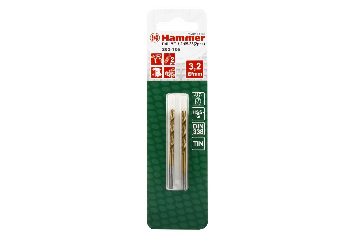 Сверло HAMMER Flex 202-106 DR MT 3,2мм*65/36мм металл, HSS, TIN, 2шт.
