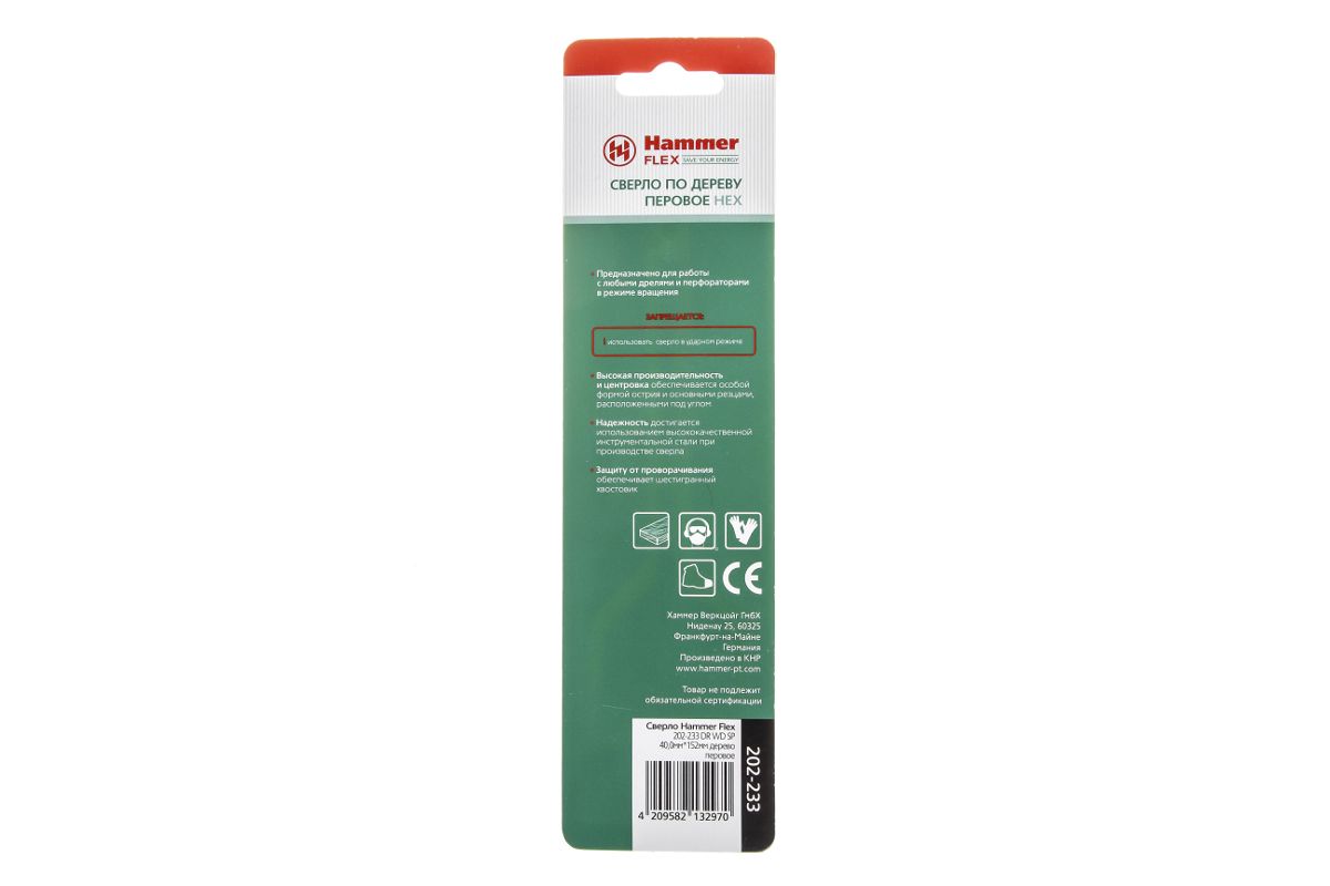 Сверло HAMMER Flex 202-233 DR WD SP 40мм*152мм дерево, перовое