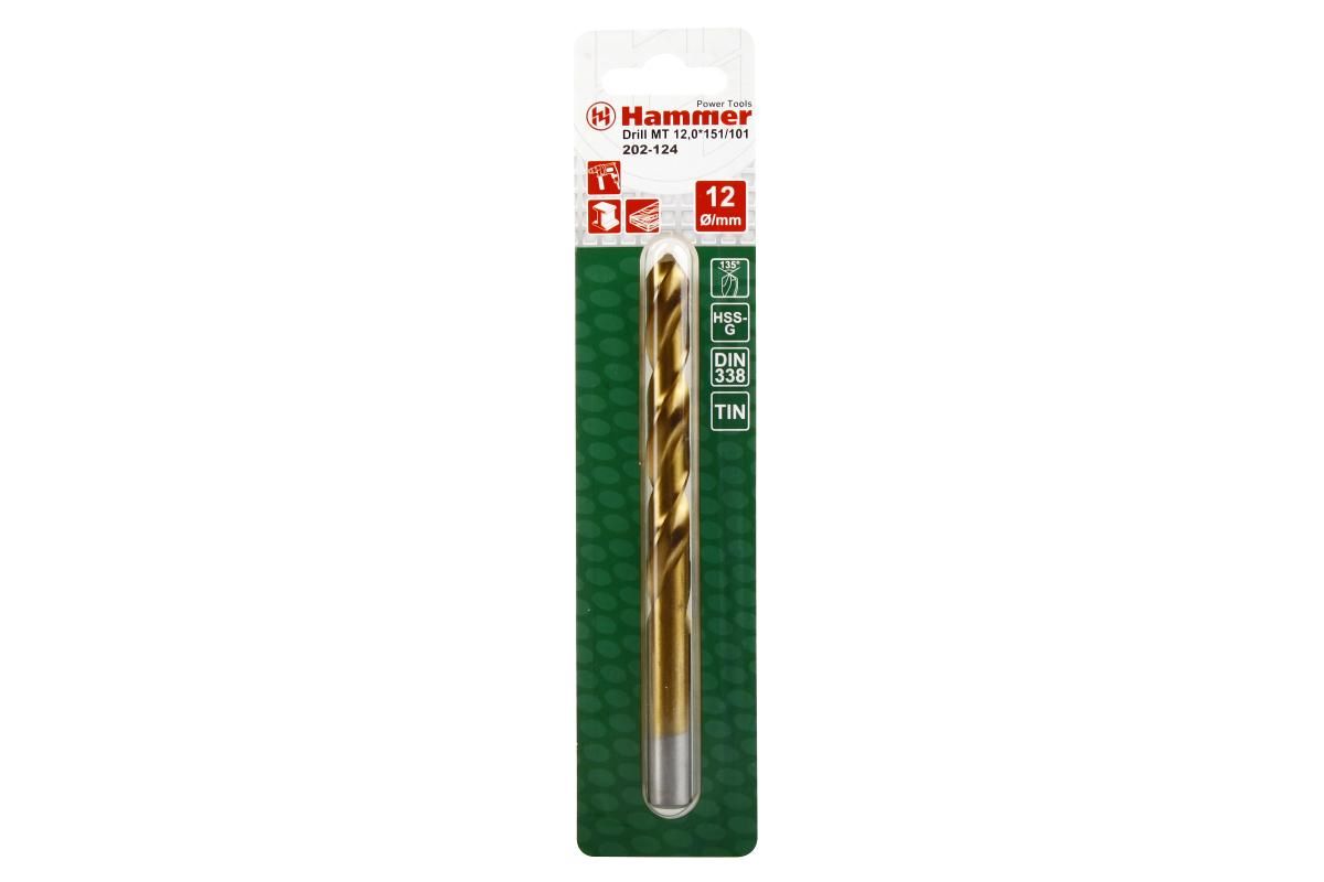 Сверло HAMMER Flex 202-124 DR MT 12,0мм*151/101мм металл, HSS, TIN