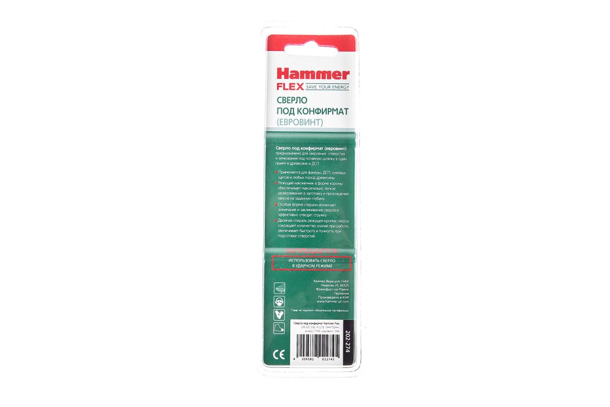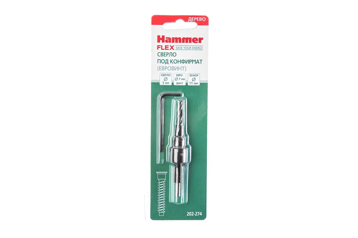 Сверло под конфирмат HAMMER Flex 202-274 DR WD DBL FLUTE 5мм*50мм, зенкер 11мм, евровинт 7мм