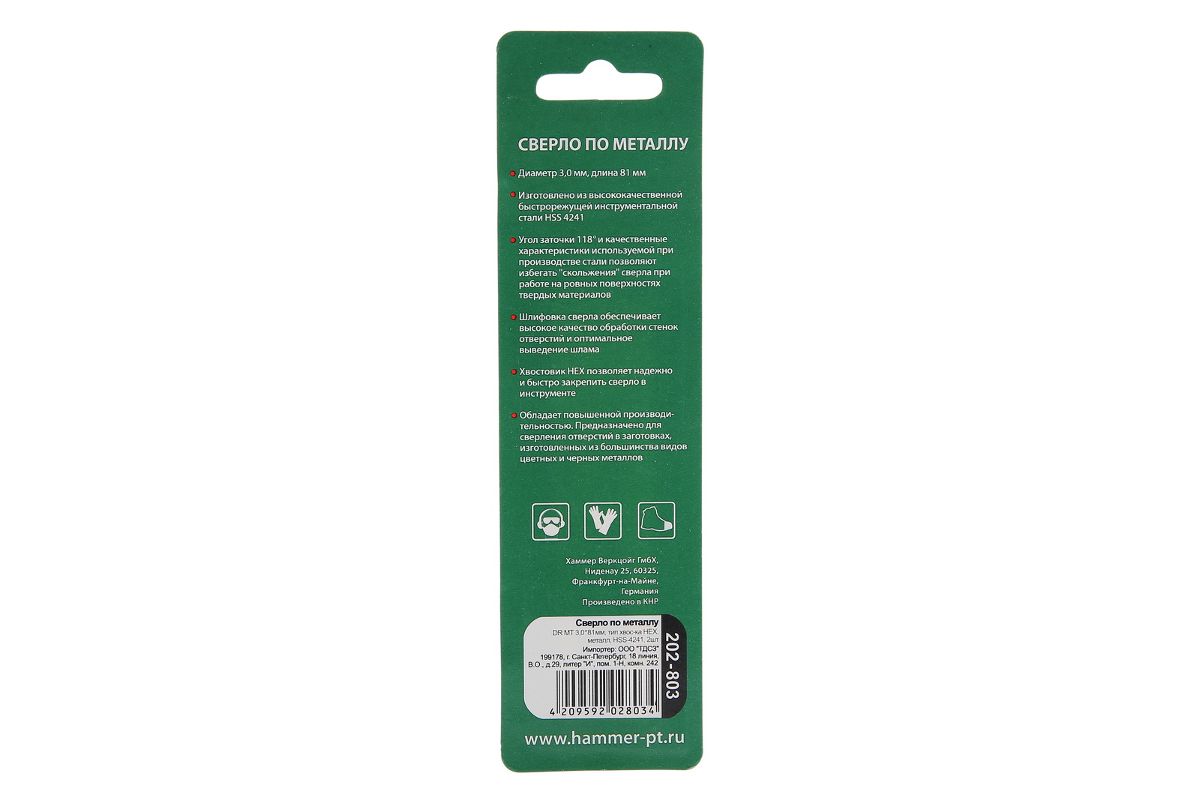 Сверло по металлу HAMMER Ф3х81мм (202-803 DR MT 2шт.)