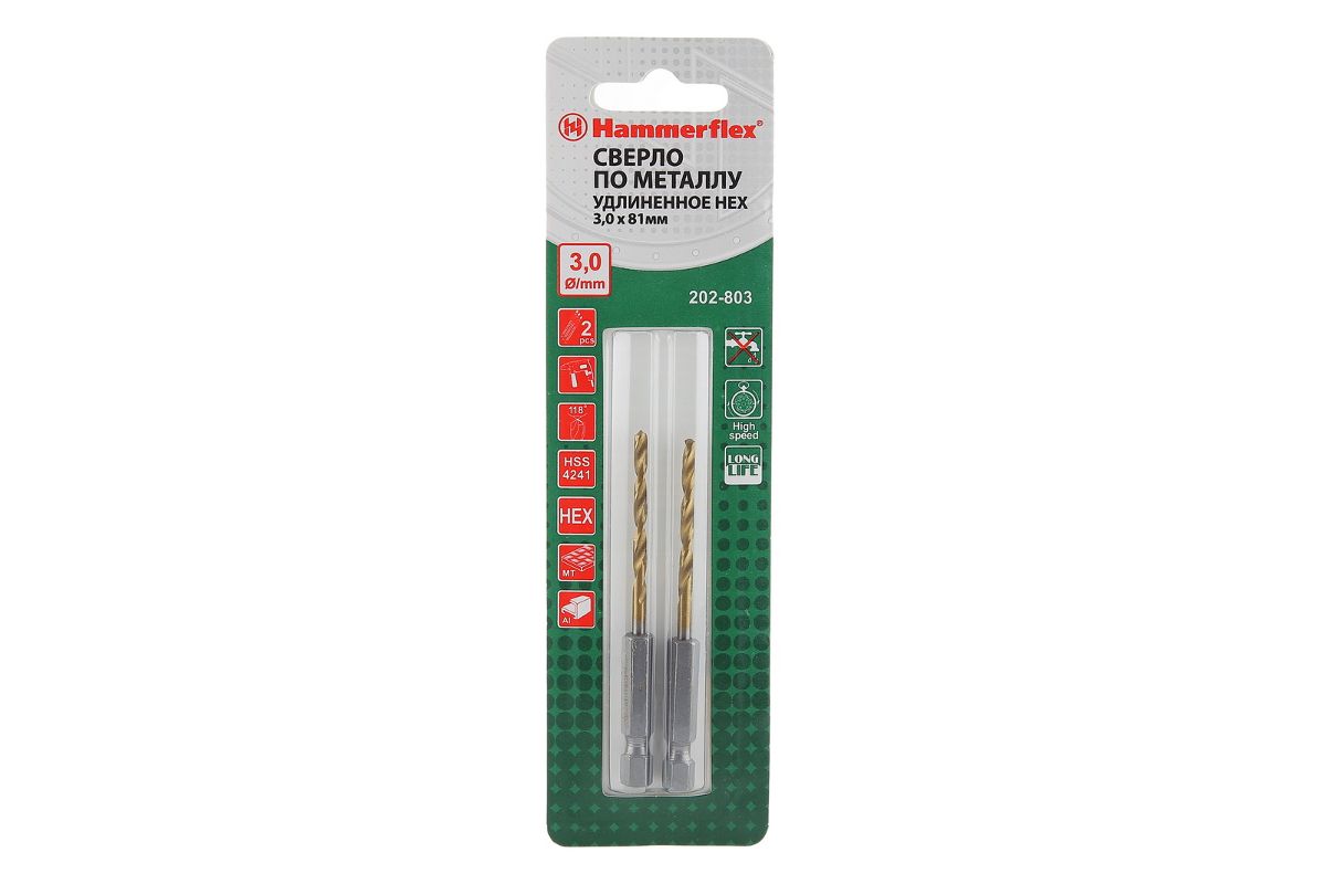 Сверло HAMMER Flex 202-803 DR MT 3,0мм*81 тип хвостовика - HEX, металл, HSS-4241, TIN, 2шт.