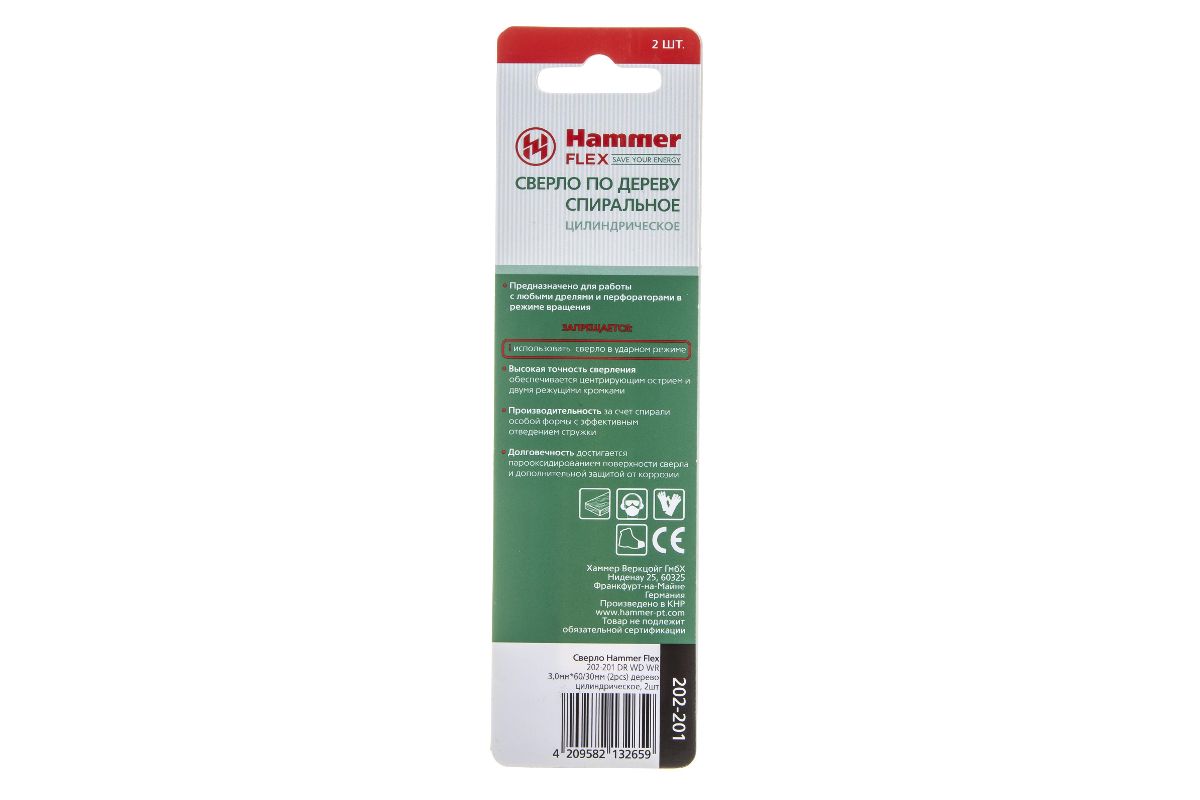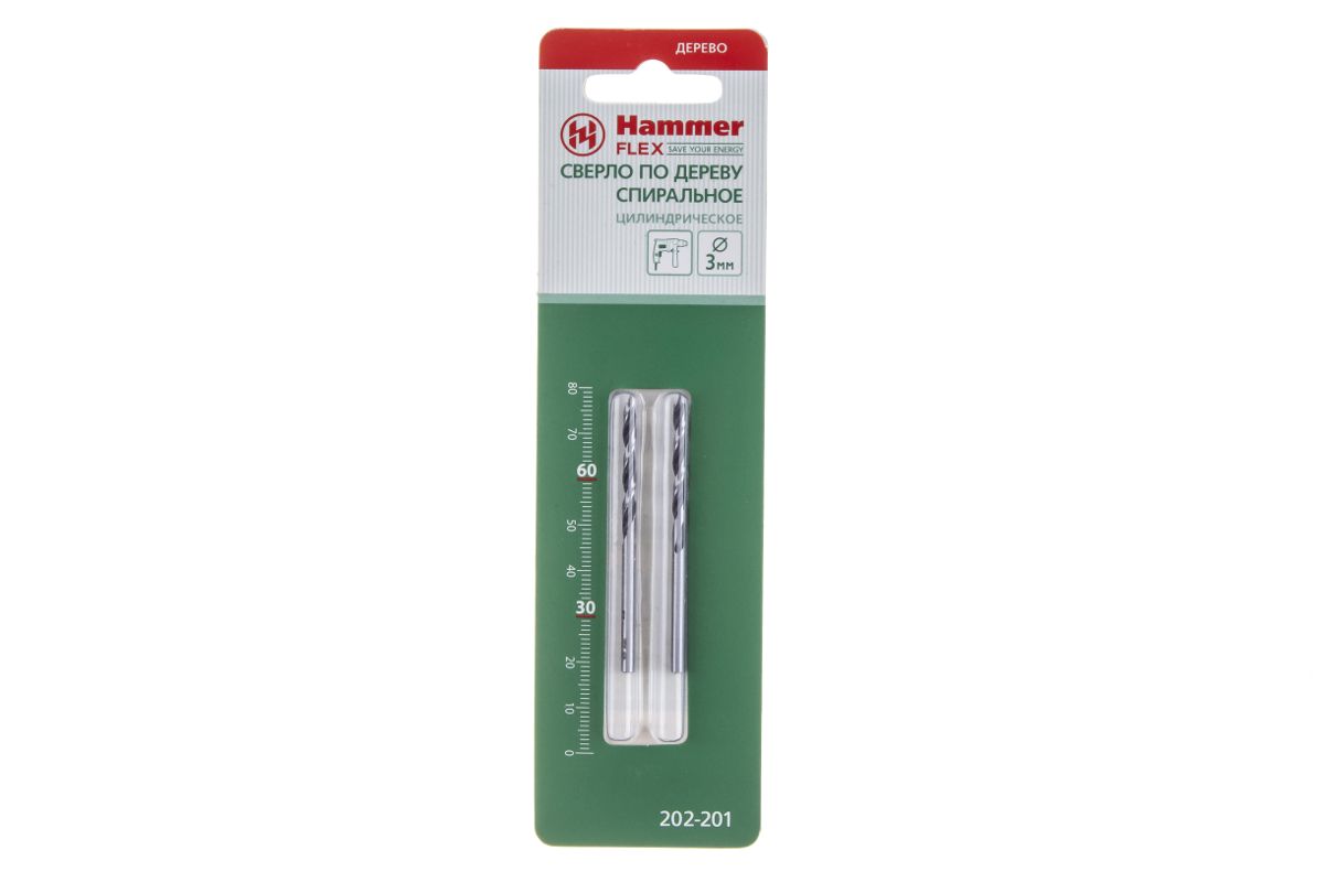 Сверло HAMMER Flex 202-201 DR WD WR 3,0мм*60/30мм дерево, цилиндрическое, 2шт.