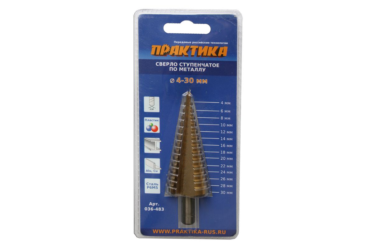 Сверло ступенчатое ПРАКТИКА 036-483 4-30мм, шаг 2мм