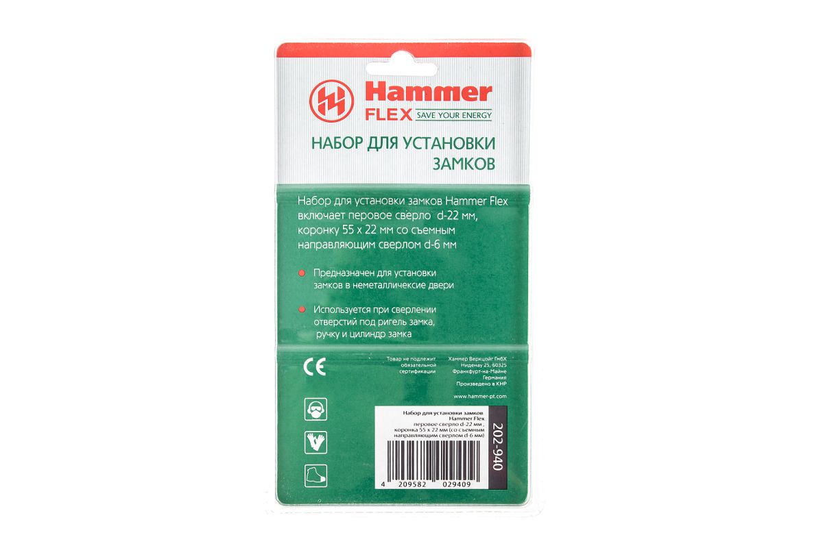 Набор для установки замков HAMMER Flex 202-940 НаборNo40 (Hex) 22мм, коронка 55*22мм (6мм)