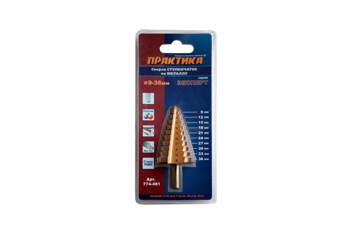 Сверло ступенчатое ПРАКТИКА 774-481 9-36мм, шаг 3мм