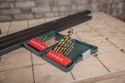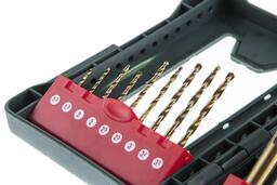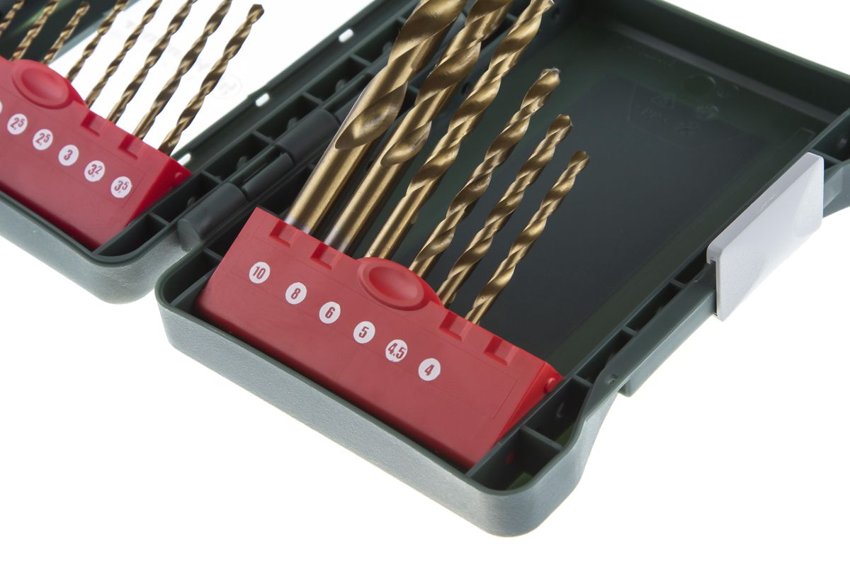 Применяются для сверления стали, сплавов, цветных металлов, чугуна, железа, алюминия, а также пластмасс. В наборе есть самые популярные размеры сверл в удобном кейсе для хранения.