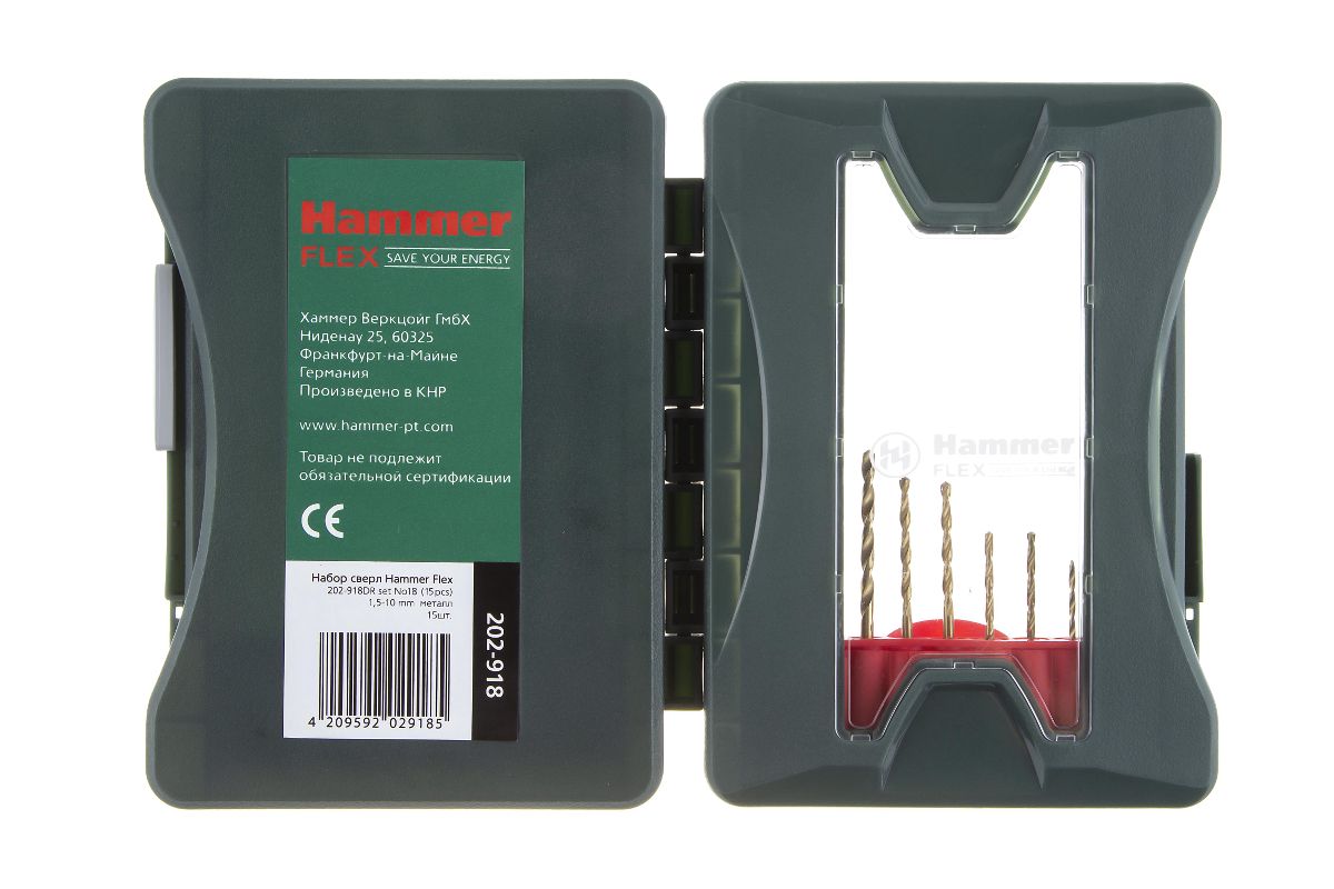 Набор сверл HAMMER Flex 202-918 DR набор No18 1,0-10мм металл, 15шт.