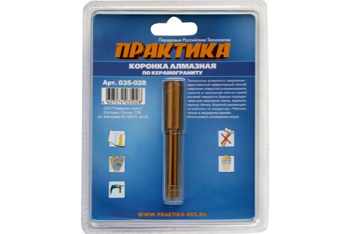 Коронка алм. ПРАКТИКА 035-028 8мм по керамограниту