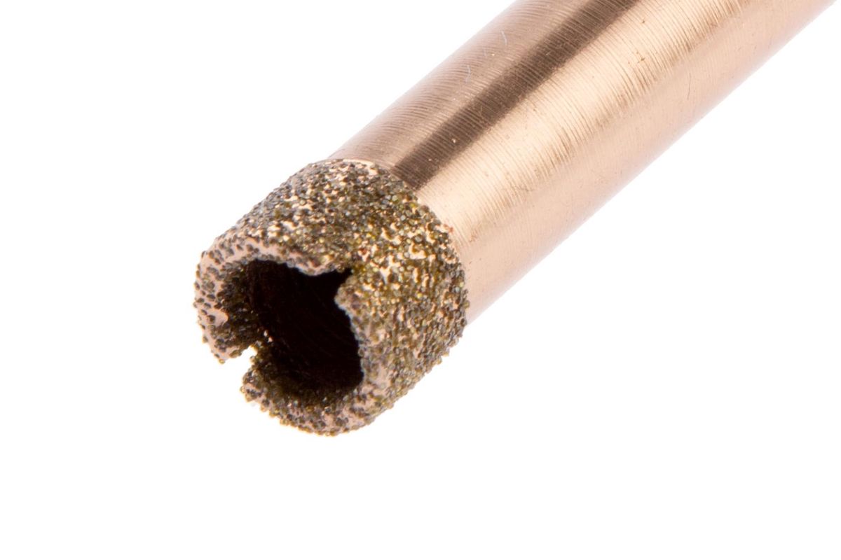 По сути представляют собой алмазную сверлильную коронку. Особенно подходят для сверления керамического гранита, стекла, облицовочной плитки. Подходит для сверления бетона и кирпича. Для безударного сверления! Для работы лучше всего использовать аккумуляторную дрель, сочетающую высокий крутящий момент и невысокие обороты. Рекомендуемая частота оборотов от 300 до 1500 об/мин в зависимости от диаметра. Использовать охлаждение водой.