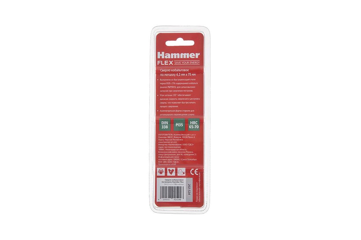 Сверло HAMMER Flex 202-524 DR CO 4,2мм*75мм кобальт M35, DIN338, HRC65-70 1шт