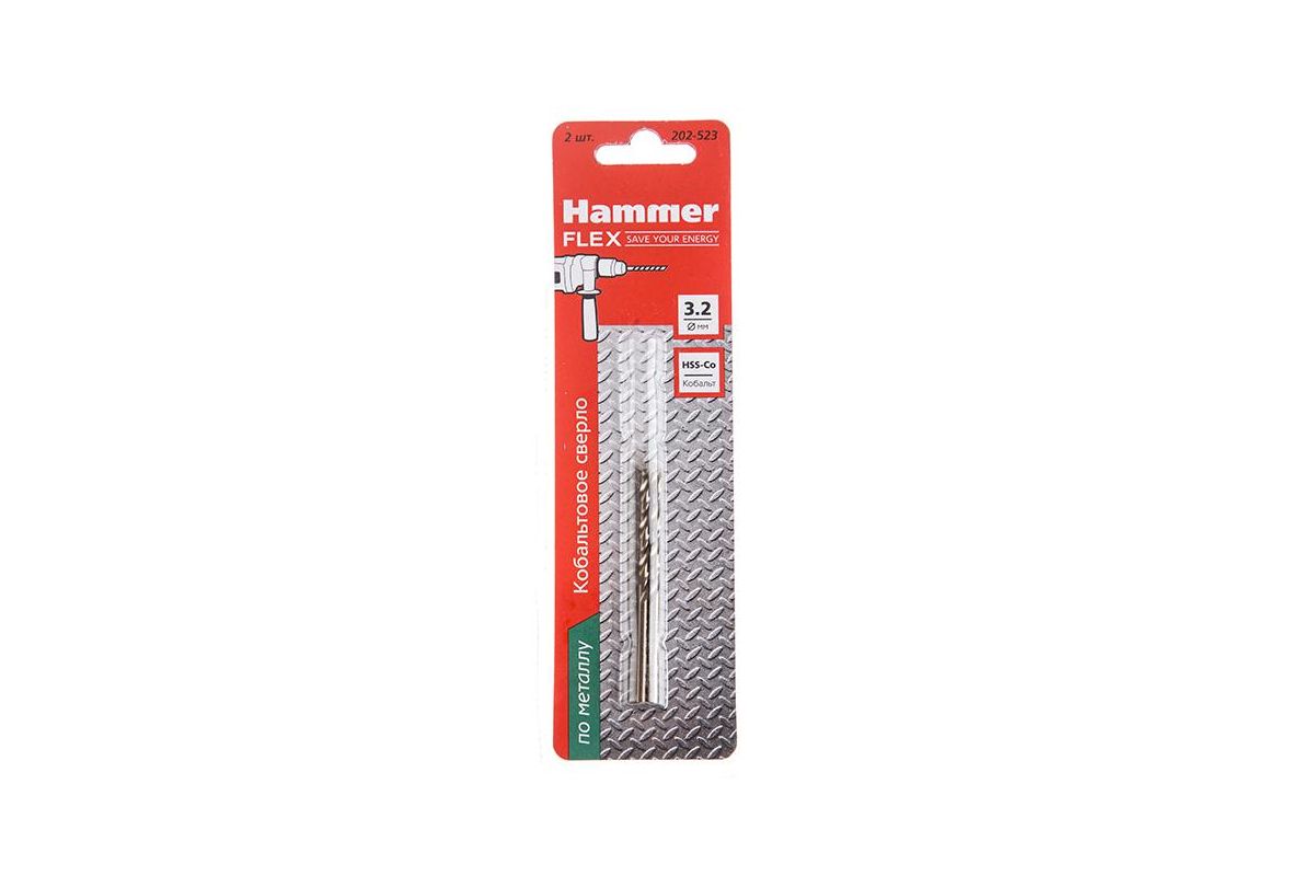 Сверло HAMMER Flex 202-523 DR CO 3,2мм*65мм кобальт M35, DIN338, HRC65-70 2шт