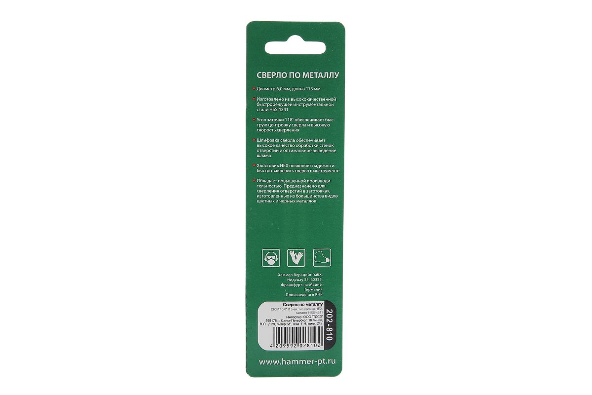 Сверло по металлу HAMMER Ф6х113мм (202-810 DR MT )