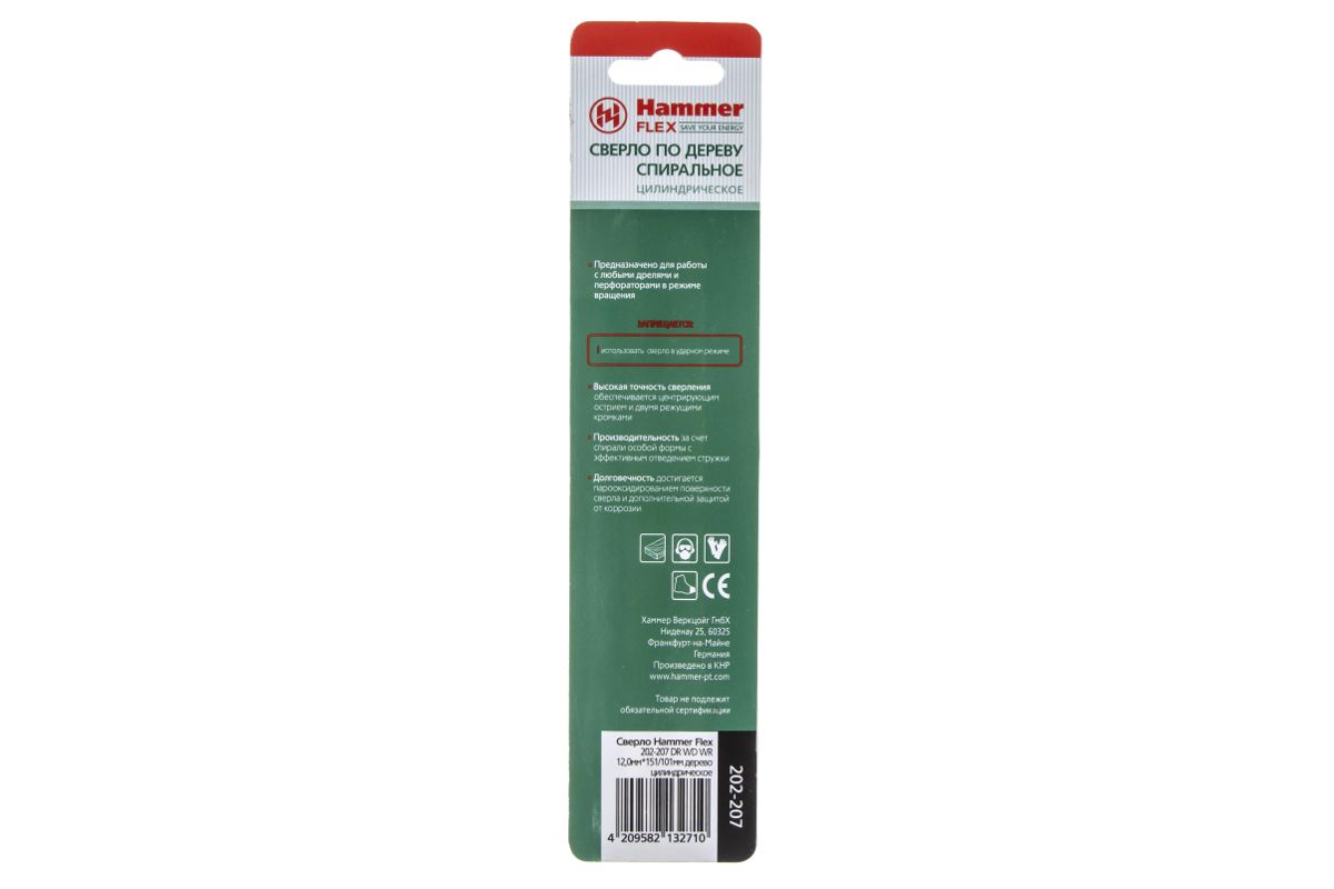 Сверло HAMMER Flex 202-207 DR WD WR 12,0мм*151/101мм дерево, цилиндрическое