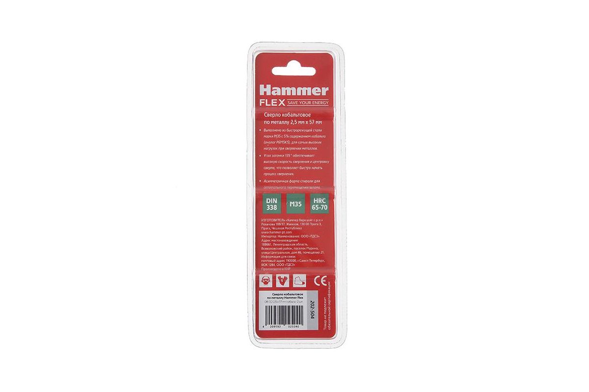 Сверло HAMMER Flex 202-504 DR CO 2,50*мм57мм кобальт M35, DIN338, HRC65-70 2шт