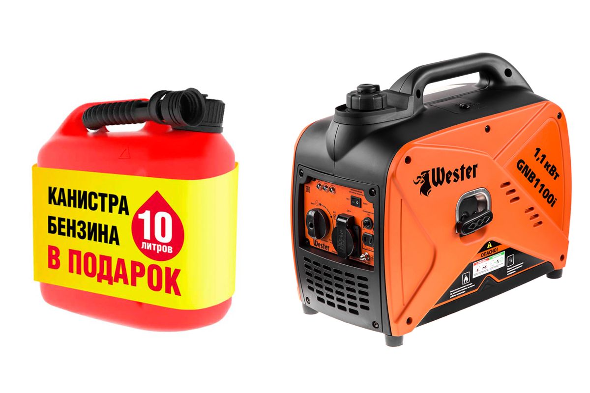 Бензиновый генератор WESTER Генератор GNB1100i +Карта топливная ПТК 10 л +Канистра 235-010 10л