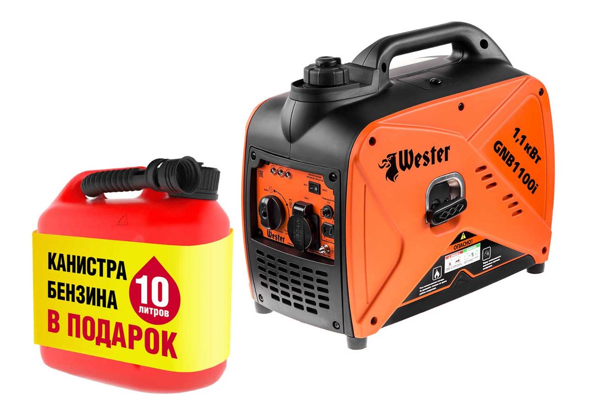 Набор Бензоэлектростанция WESTER GNB1100i 1,1КВт+Топливная карта АИ-92 10л +Канистра 10л