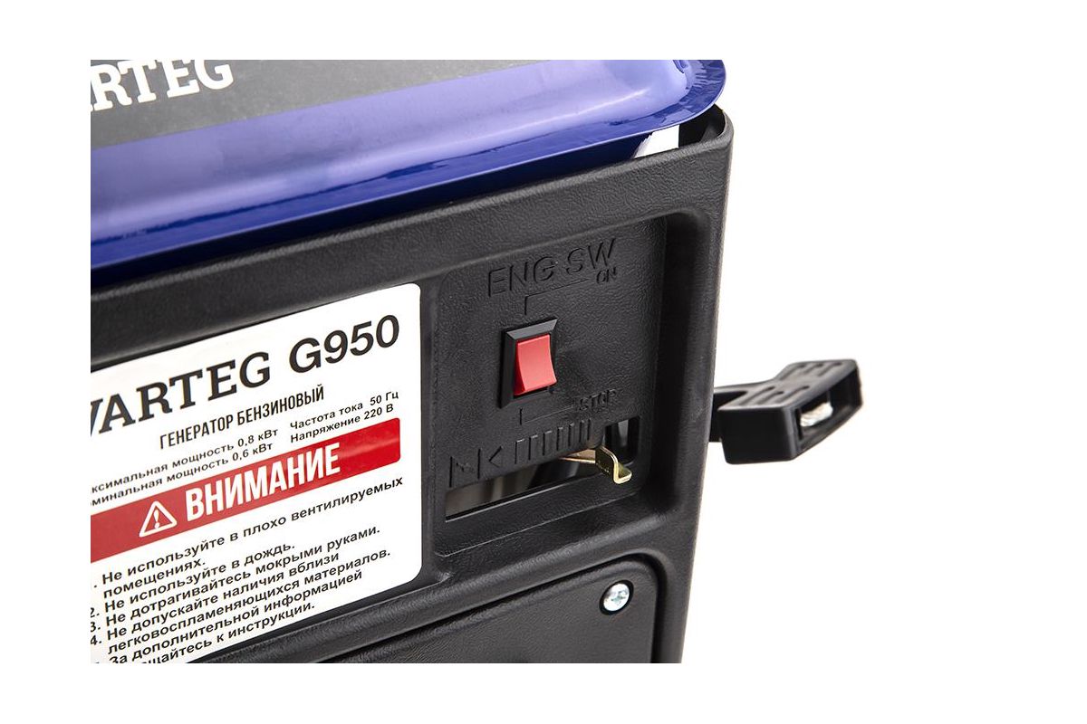 FOXWELD 5817 varteg g950 – бензиновый генератор для резервного питания электроинструментов, осветительных приборов и другой техники. Вырабатывает однофазный переменный ток напряжением 220В и частотой 50 Гц. Запускается от ручного стартера. Пиковая мощность – 0,8 кВт, номинальная – 0,6 кВт.