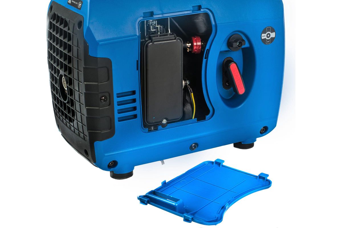 Инверторный генератор весит около 12 кг, он легко помещается в багажник автомобиля. Кожух, в который заключен электрогенератор, выполнен из прочного пластика и устойчив к ударам. Все выводы защищены от пыли и воды резиновыми заглушками, что особенно актуально при использовании на природе. Ножки оборудованы амортизирующими наконечниками, которые гасят вибрацию и препятствуют опрокидыванию при установке на неровном грунте.