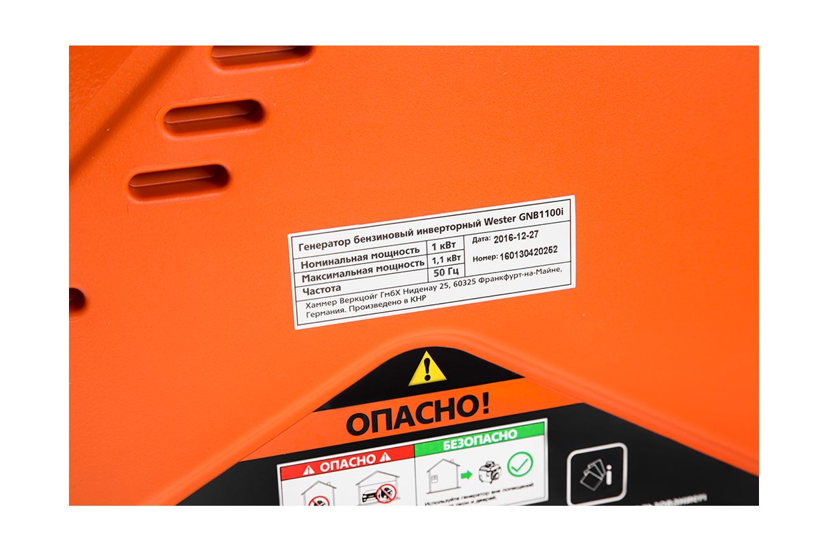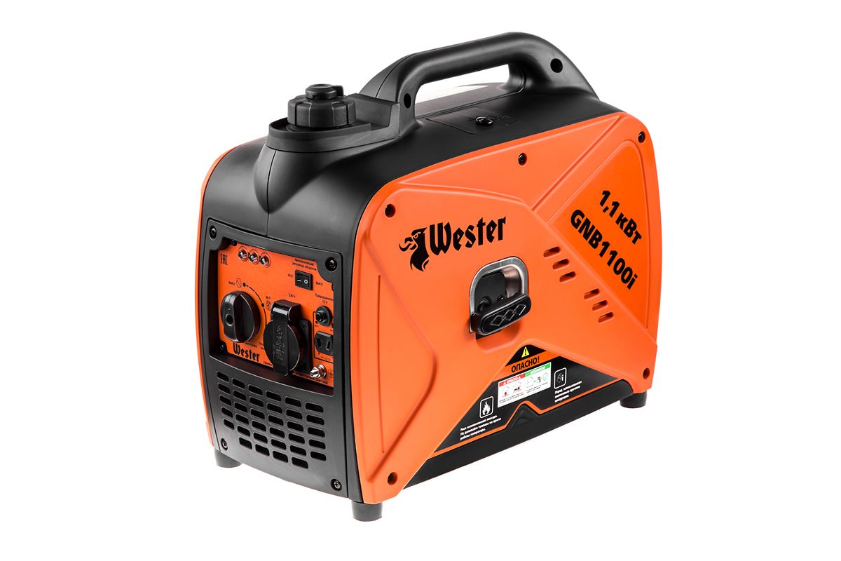 WESTER GNB1100i – компактный инверторный генератор для работы с маломощными инструментами и электроприборами – дрелями, лобзиками, прожекторами и т.д. Активная мощность – 1000 Вт. Рабочий объём 4х-тактного двигателя – 60 см³. Работает с маслами с градацией не ниже СD или SAE10W30, 15W40. Генератор пригодится при дорожных работах, на стройке, даче или в походе.