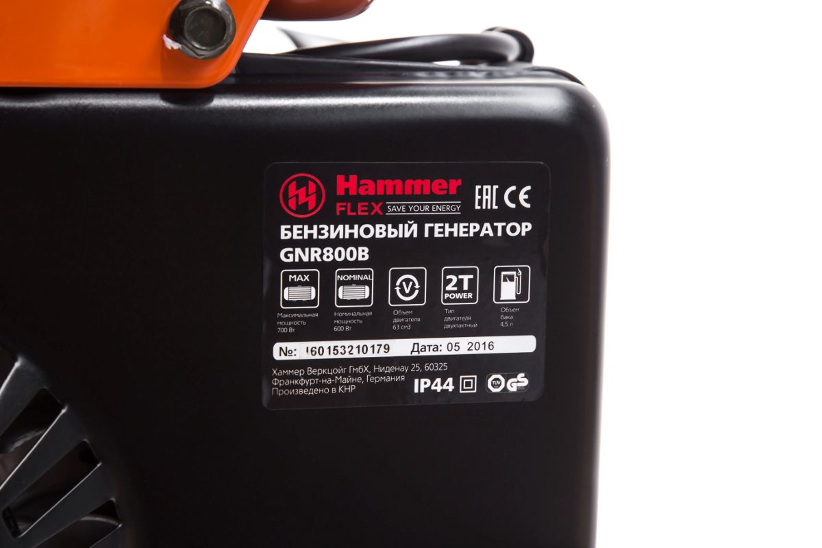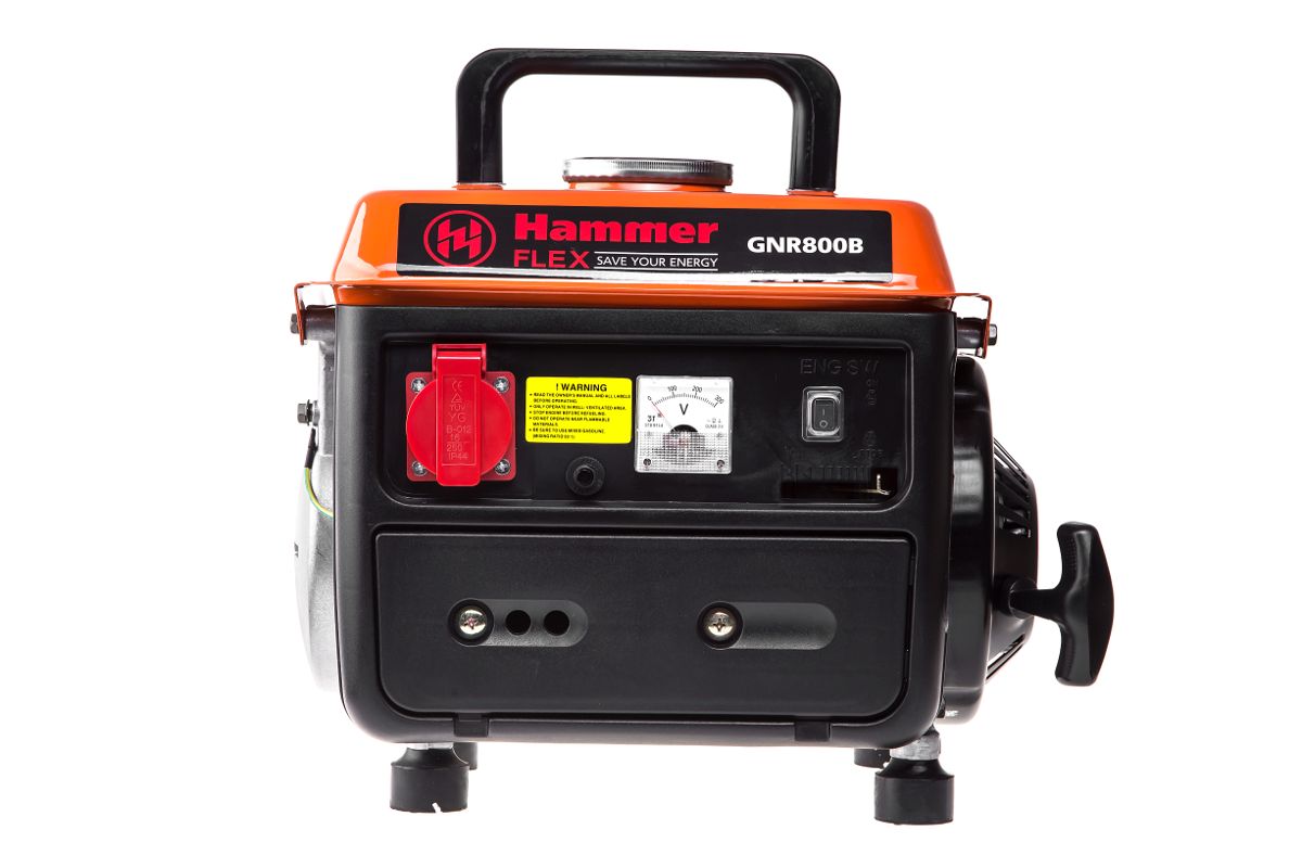 HAMMER GNR800B – компактный бензиновый генератор для резервного электропитания на даче, рыбалке или в походе. Полная мощность – 700 ВА. Пригодится для освещения небольшой территории и запитывания маломощных инструментов и приборов - мини-дрелей, шлифмашинки, электробритвы и т.п. Рабочий объём двигателя – 63 см³, степень сжатия 8,5/1.