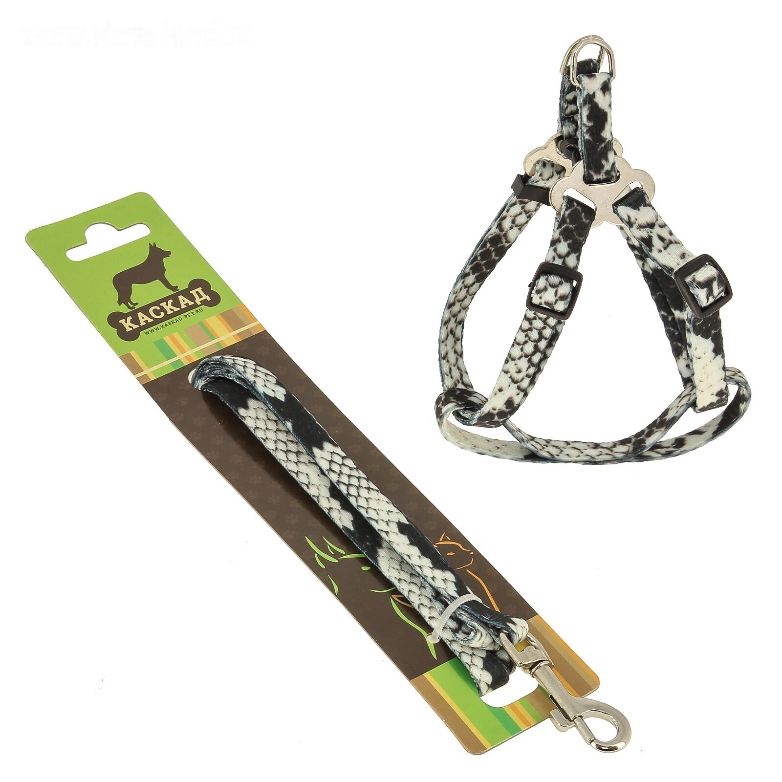 Комплект амуниции для кошек, шлейка 1,5 см, ОШ/ОГ 26-40 см, поводок 1,5 см х120 см, нейлон, змеиный
